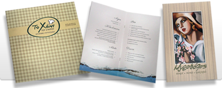 Έντυπα που δένονται με καρφίτσα. Προϊοντικά, εταιρικά, εγχειρίδια χρήσης και ότι σας βοηθά να επικοινωνήσετε με τους πελάτες σας. Μην ξεχάσετε να χρησιμοποιήσετε το πρότυπο που αντιστοιχεί στην διάσταση που επιθυμείτε για να βεβαιωθείτε ότι το έντυπο σας θα τυπωθεί χωρίς προβλήματα και ανεπιθύμητες 'απώλειες'.